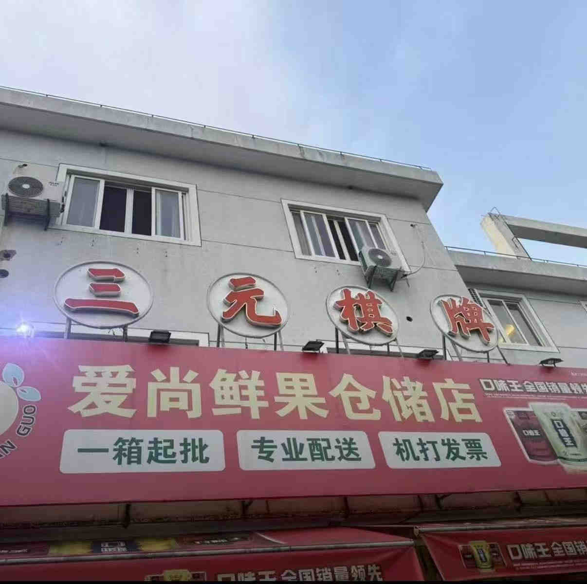 金山金山卫三元棋牌,旁边有个停车场,停车很方便,附近居民区环绕,常住人口多,